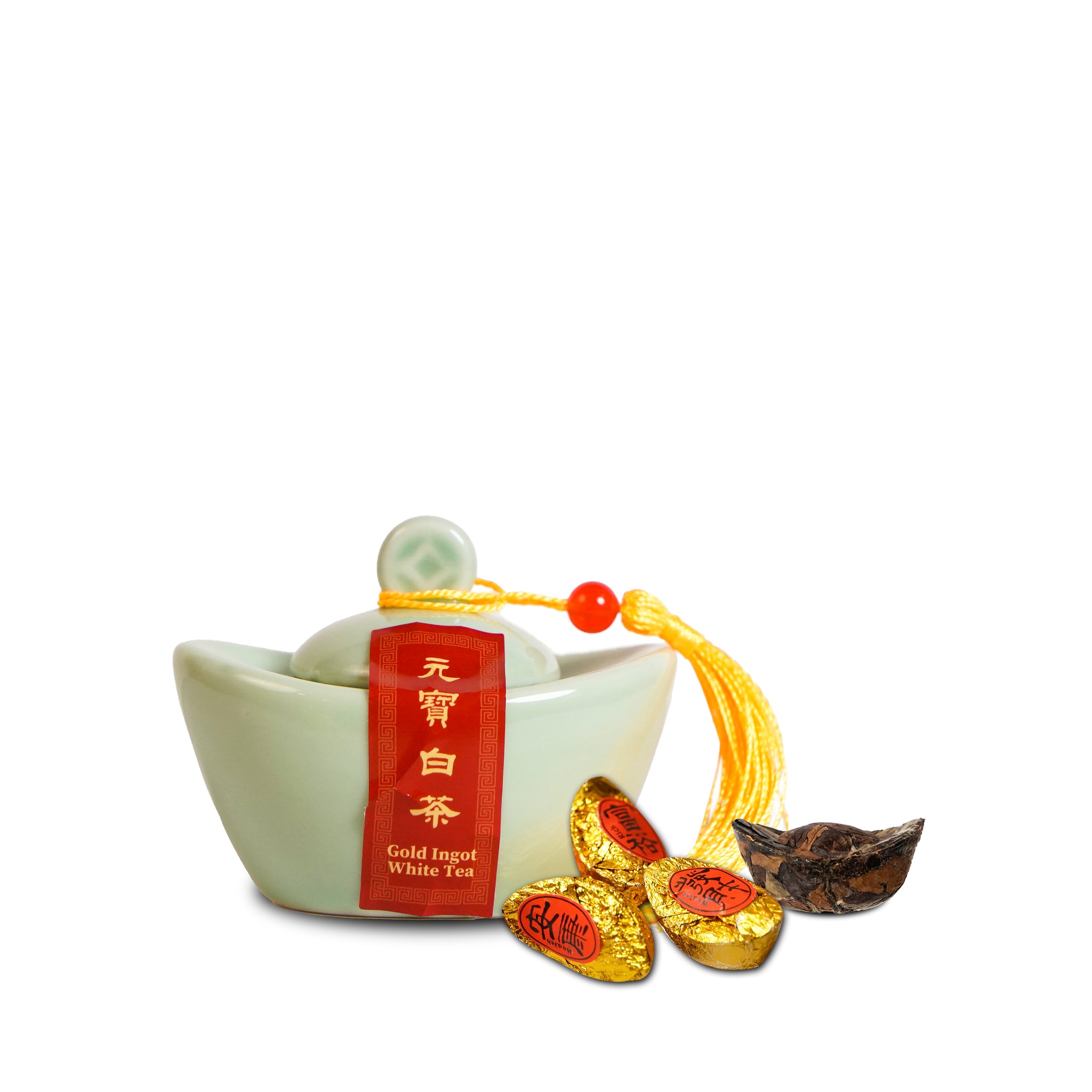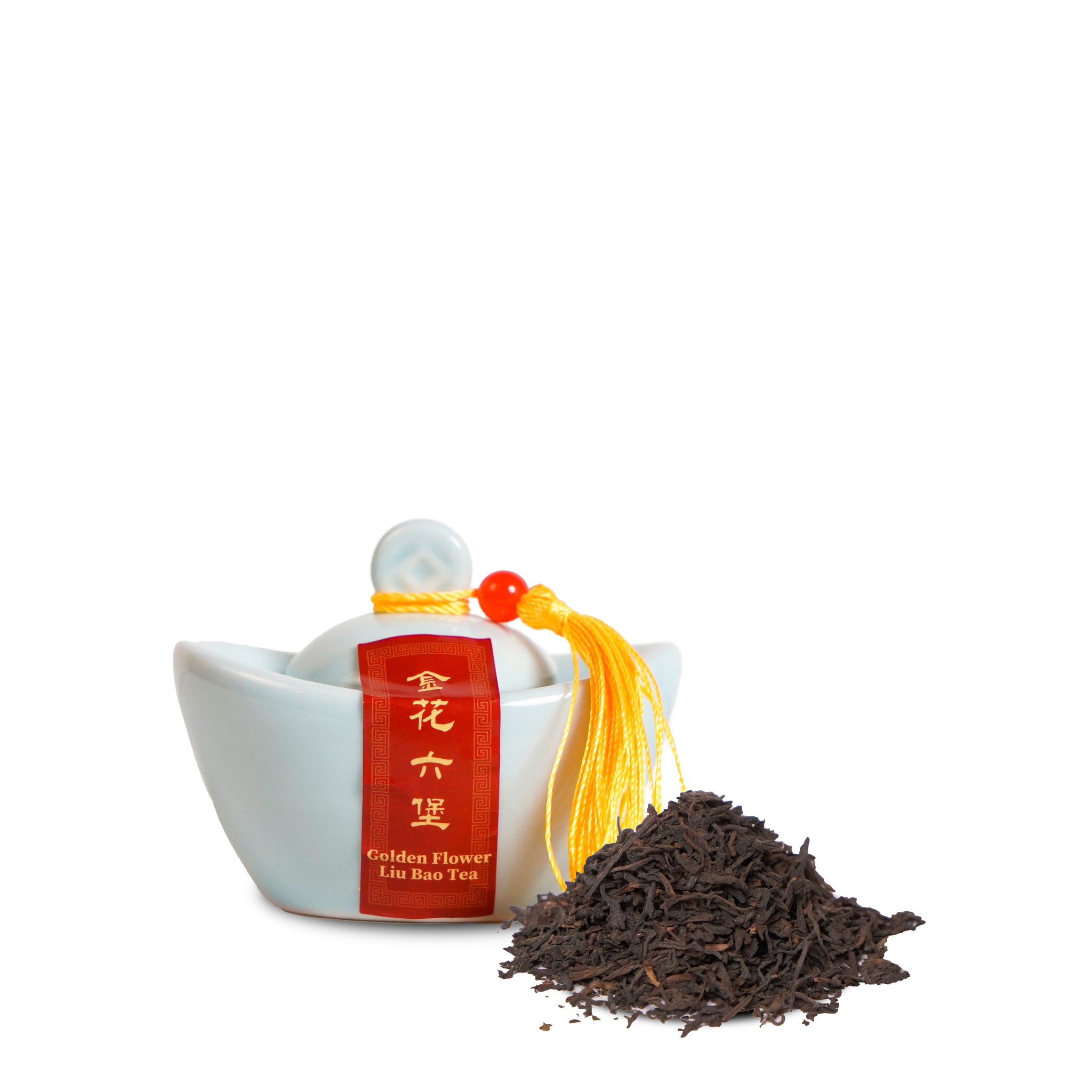 龙珠白茶 × 6 粒 |圆润成珠,寓意圆满吉祥 古意红茶(15 g) |汤色红亮,象征红红火火 贡品铁观音(20 g) |香气高雅,寓意贵气相随 小福砖普洱熟茶 × 6 粒 |福砖成形,寓意福气常在 蝴蝶造型过滤器 × 1 |象征新生启程、焕然一新