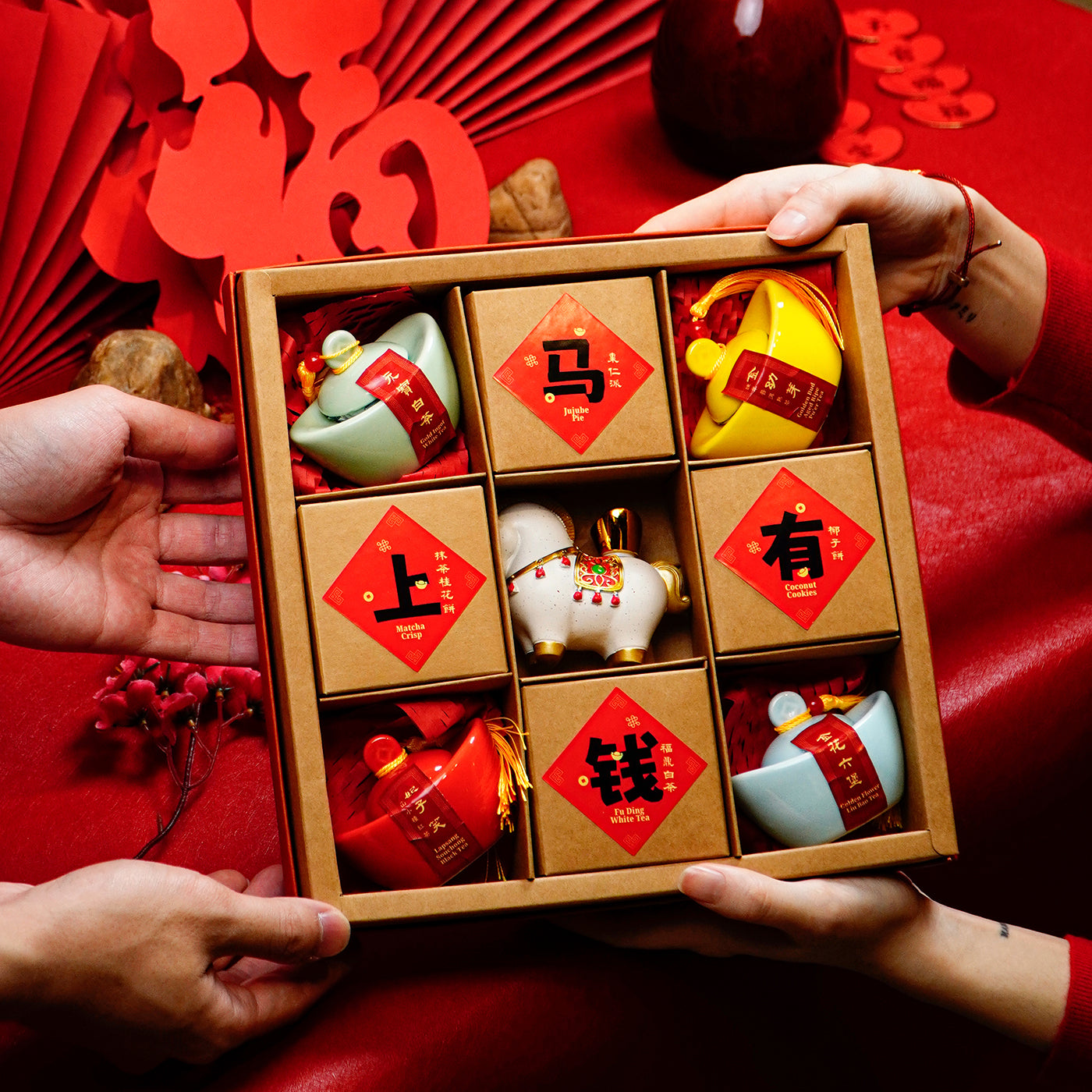 马年大吉礼盒,以茶叶、茶点与茶宠承载新年祝福,让每一份礼物都满溢喜庆、财富与心意。